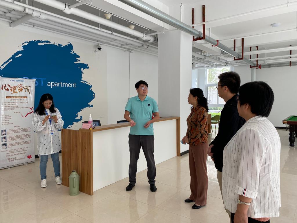 9月26-27日,党总支书记王新、副院长郭印、英语专业教研室主任毕纪芹、分团委书记马松赴济南看望英语173班跨境电商方向的学生,他们正在山东网商集团进行实习实训。学院一行深入学生宿舍,跟每一位同学交流,传达学院教师的关怀问候,了解他们在企业的学习和生活情况。随后结合学生的教学计划和日常管理等事宜,跟山东网商集团子公司山东伯禹川恒网络科技有限公司总经理李明亮、企业辅导员刘恺及部分企业教师进行了座谈,双方就进一步保障校企合作规范和提高实习实训质量,进行了深入的沟通交流。