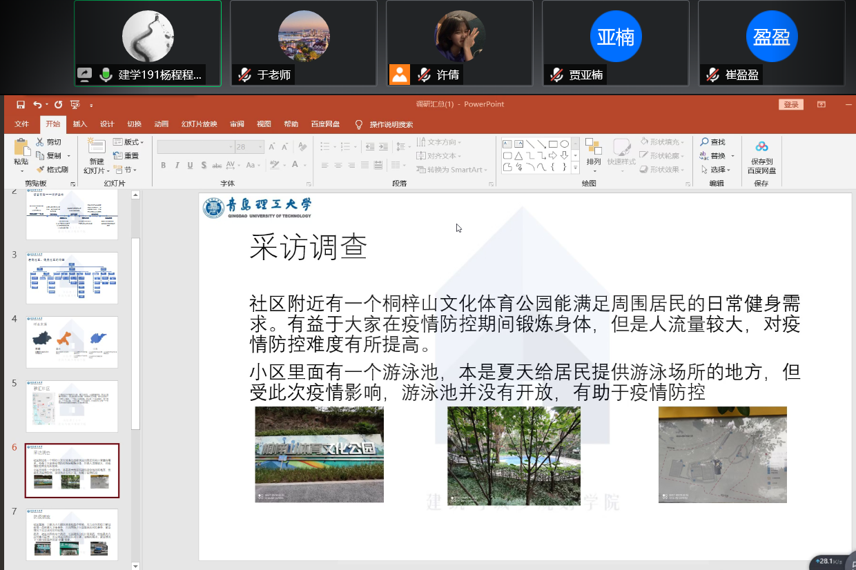 “助力战疫,心系城乡”暑期调研团队的七名队员在指导老师的带领下,通过问卷、走访、咨询等形式对各自所在社区的防控工作进行调查。结合小组成员分布的优势,通过线上交流,获得多地的疫情状况,复工情况,基础设施建设情况等。对不同地市、城乡进行横向对比研究,结合自身专业知识,对疫情期间不同地区防控工作与公共空间进行研究和优化。旨在优良完善疫情防控策略,促进城乡之间防控工作的相互借鉴与交流,进一步提高城市社区与乡村的疫情防控能力,找寻疫情环境中城乡人居环境短板与韧性社区建设的思考。