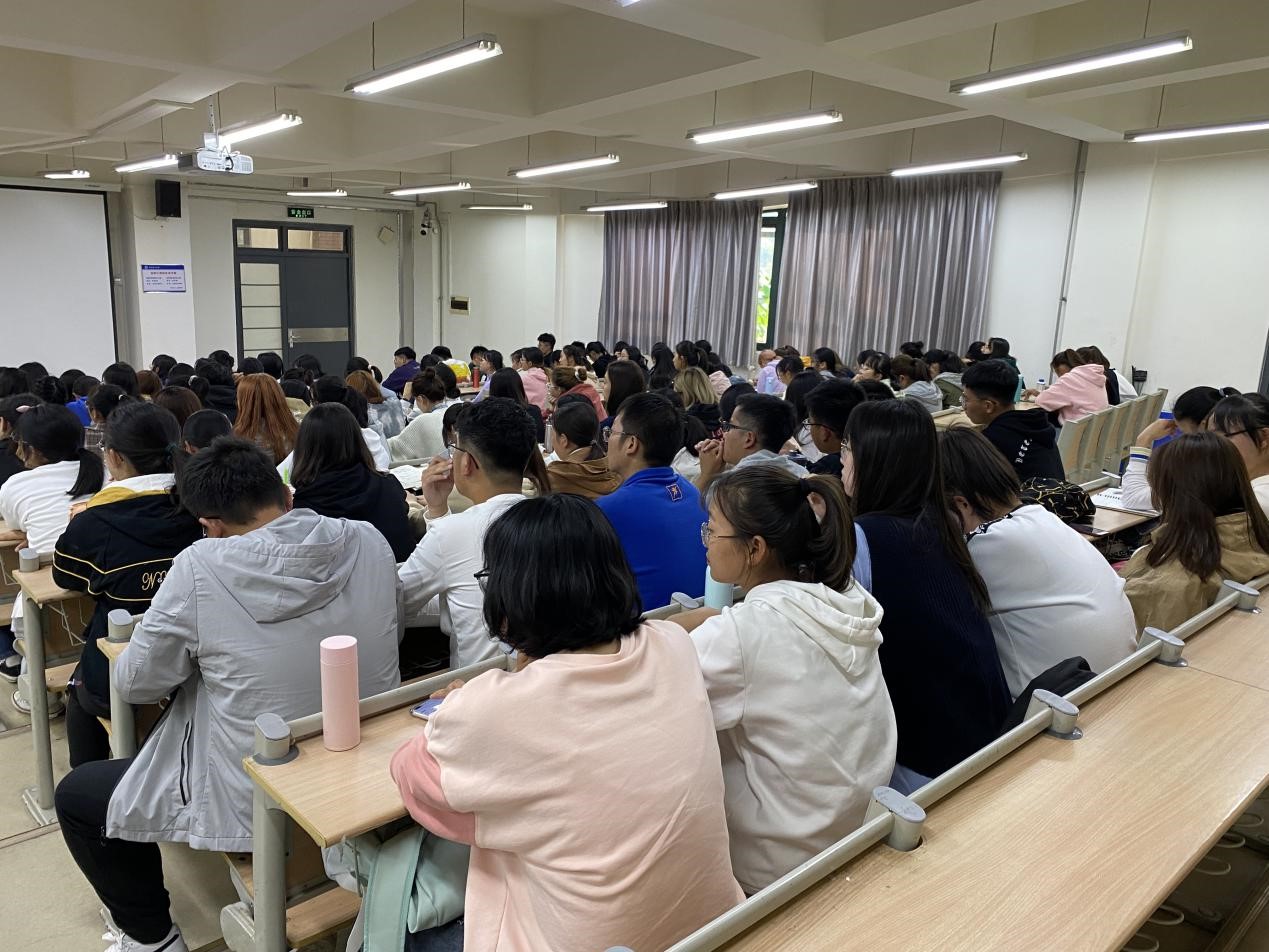 为使2020级新生进一步了解所学专业,合理规划学业,明确学习目标,10月7日,商学院在主教学楼分别召开会计、财管、经贸、统计和国商等专业新生专业教育讲座。讲座由刘奕、孙照、臧瑶瑶等辅导员分头主持,王先鹿、夏秀芳、李娟娟、沈亮、孙秀明等各专业教研室主任担任主讲,各专业全体新生参加本专业讲座。