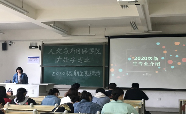 之后,各专业分别为新生做了各具特色的专业教育。英语专业专业教育主要从专业发展、培养方案、大学专业学习特点三方面开展。邀请了2020届优秀毕业生录制短视频,现身说法,介绍大学专业学习规划和学习方法等;山东网商集团教育总监曹萌对20级跨境电商班同学专门做专业教育,介绍跨境电商专业的现状和广阔发展前景,激励同学们奋发拼搏。社会工作专业教研室主任刘世颖用学生参演、制作的小视频《社工disco》开场吸引同学们的注意力,并传达了社工专业的知识和理念,使同学们在愉悦放松的气氛之下开始此次教育会。刘世颖就社会工作专业的发展历程、培养方案、师资队伍、实习基地、社会服务以及就业方向与前景等方面进行了深入的介绍,消除了学生对专业发展的迷茫。汉语言文学专业的专业教育在师生共同观看专业师生自导自演的吟诵视频《木瓜》中拉开帷幕。教研室主任张成福强调,汉语言文学专业重尚风骨、注重对学生人格的养成,提出了“中正仁和,文以化人”的人才培养理念,形成了重实践、尚风骨、尊学术的优良传统。张成福着重从什么是汉语言文学专业、汉语言文学专业学什么、汉语言文学专业能干什么、汉语言文学专业怎么学、汉语言文学专业要求大家怎么做等方面对专业进行了介绍。广告学专业常宁从你怎样认识现代广告的提问开始,介绍了新媒体对广告行业的影响,特别说明了今后专业所需的技能与就业方向,对同学们的专业学习提出了要求。日语专业主任王星的专业介绍与校企合作企业方共同开展,通过介绍,大一新生对将来的专业学习和专业去向有了较清晰的认识。各专业介绍后,专业教师与各自学业导师组学生见面进行了深度交流。