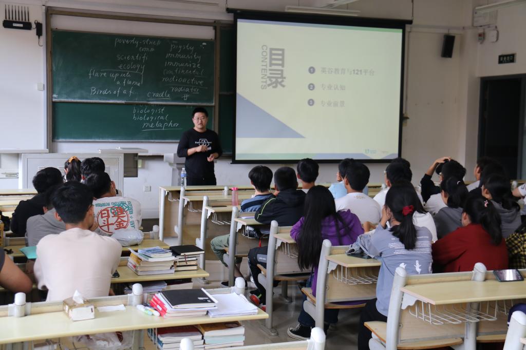 在校企专业会场,英谷教育王万琦老师用风趣幽默的讲述方式,就英谷教育与121平台、专业认知、专业前景向通信工程校企专业的同学们进行了精彩解说,让校企专业的同学们以最快的方式,走进英谷教育的校企合作教学模式。通信工程教研室主任王绪虎就通信工程校企专业的专业培养方案、教学大纲、科研进展、毕业去向等相关事宜进行专业介绍。