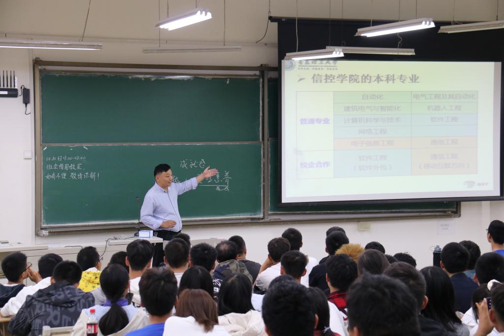 为帮助学生适应大学生活,坚定专业思想,养成良好的学习风尚,信息与控制工程学院通信工程教研室、电子信息工程教研室联合英谷教育,就专业培养、职业规划、学生管理等面向239位新生,在嘉陵江路校区主教学楼B333和B335分两个会场开展专业大会教育。英谷教育王万琦,通信工程教研室主任王绪虎,专业教师禚钊、周立俭,辅导员孙海英参加大会。