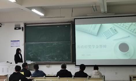 学院国家奖学金、省政府奖学金评选经学生个人申报、学院初审,择优推选了8名候选人进行答辩。答辩会分为个人PPT展示和现场提问两个环节。参选同学按抽签顺序依次上台答辩,就课程学业、科研学术成果、文体竞赛、个人经历、自身优势等方面进行5分钟的汇报,评委根据展示内容进行了现场提问。