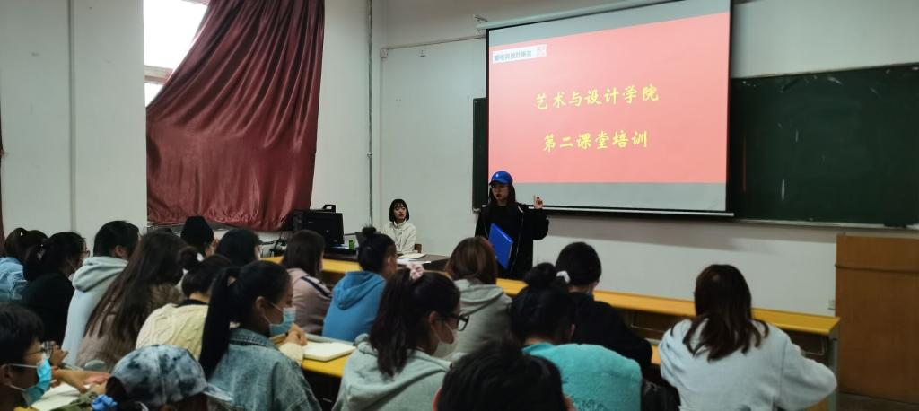 为培养德智体美劳全面发展的大学生,加强第二课堂建设,10月14日下午,在二号教学楼308教室开展了艺术与设计学院第二课堂负责人培训会议,第二课堂管理中心主任马荔影、副主任石颜宁、刘本宽、第二课堂管理中心全体成员及2020级各班班级负责人参加会议。
