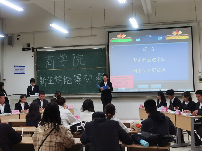 为开拓同学们的逻辑性思维,学会从不同的角度看待问题,并为学院辩论队培养发掘后备人才,10月18日,商学院新生辩论赛决赛在嘉陵江路校区主教学楼B114举行。