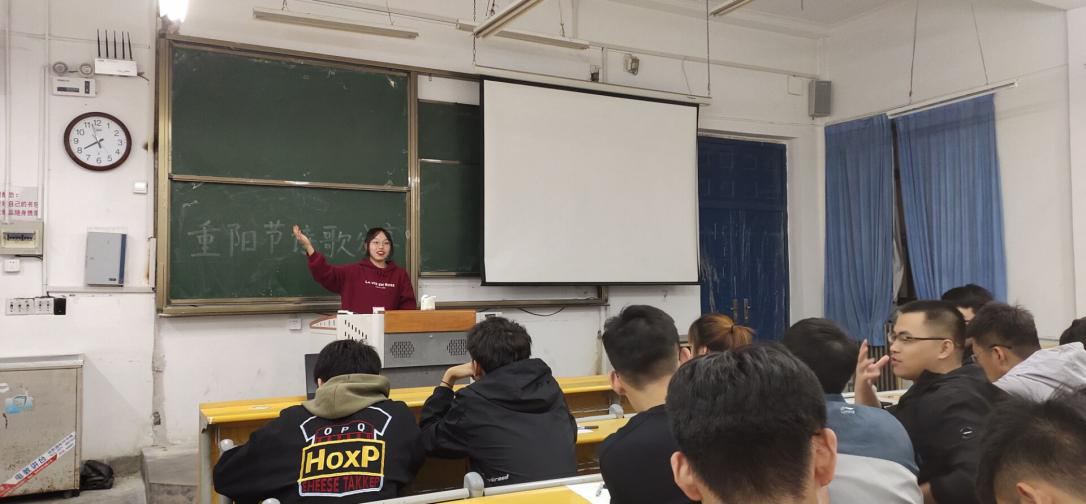 贯穿古今,重阳诗歌格外出彩,在通讯不发达的年代,诗歌是感情的绝对载体。各班团支部在开展团课的同时,组织支部成员以重阳节为主题召开“诗歌分享大会”,在或慷慨或柔情的词句当中感受重阳精彩,引导学生在经典诵读中感受传统文化魅力。同时积极组织、指导学院同学以传统书信形式表达自己内心的诚挚感情。