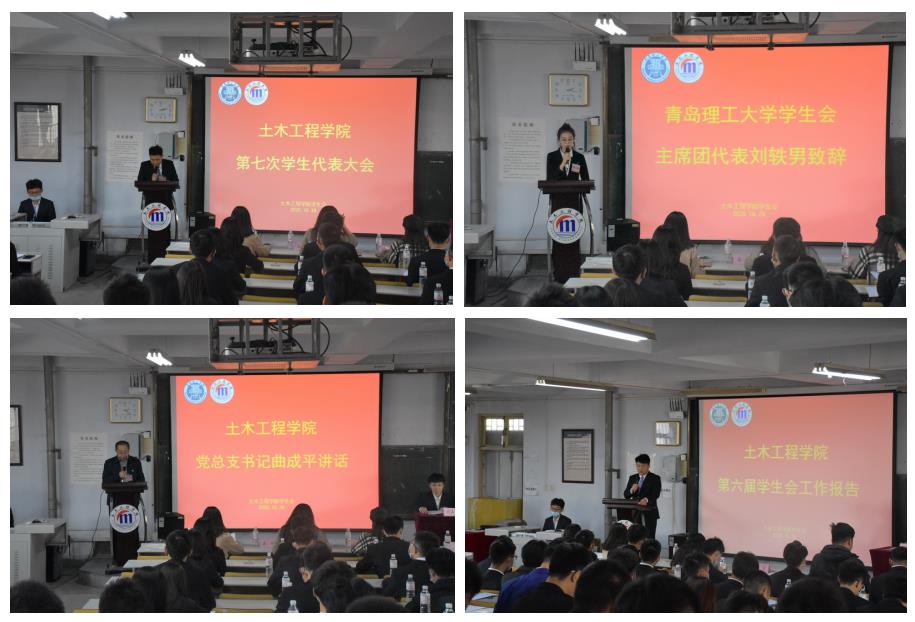 会议学习并讨论党总支书记曲成平的讲话,审议学生会工作报告;酝酿土木工程学院第七届学生会主席团成员候选人名单,选举土木工程学院第七届学生会主席团成员,选举校第十一次学生代表大会代表名单。经过各代表团分团会议的讨论与表决,由总监票人公布计票结果,刘航宇、许宏磊、韩煦三位同学当选为学院第七届学生会主席团成员,徐健等24名同学当选为校第十一次学生代表大会代表。