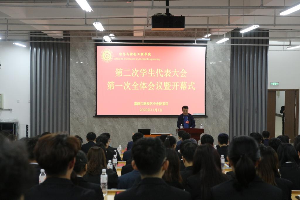 杨春明代表校学生会向大会致辞。他详细介绍了学生会工作的概况,本着为学生服务的态度,表达了对信息与控制工程学院学生会工作的肯定与支持,希望今后在工作中能够切实加强学校与学院学生会组织的交流与合作,互助互勉,共同进步。