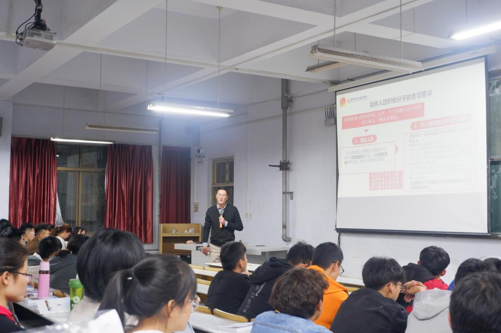 王鹏飞向同学们介绍了团务基础知识,带领同学们了解入党积极分子的确定和培养教育,并讲解了其中的各项要求和团员关系接收的各项流程。随后,王鹏飞对智慧团建、青年大学习的要求和情况进行了详细的讲解,并对同学们提出了明确要求。