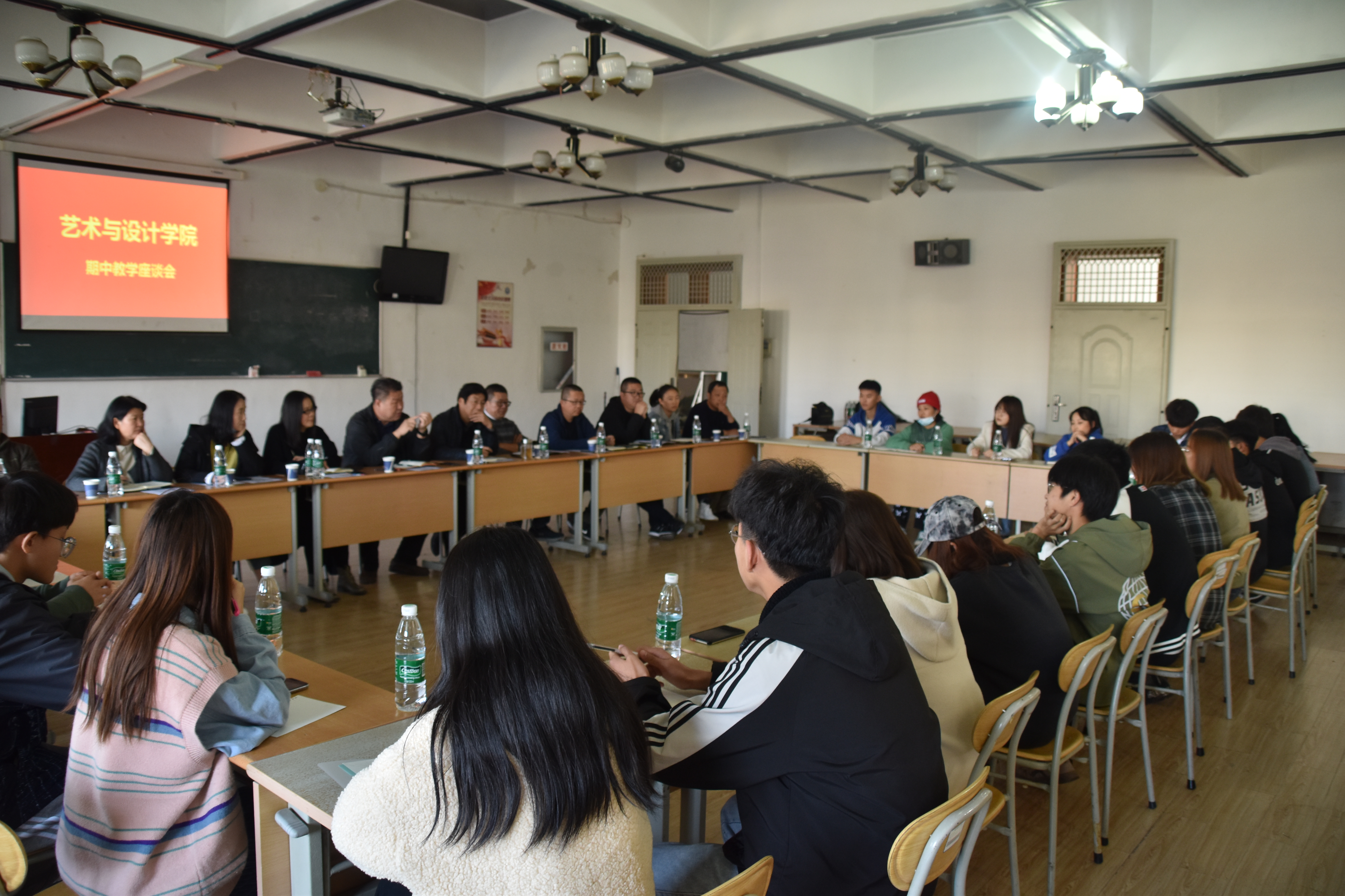 为更好了解学生学习情况,进一步加强和规范教学过程管理,促进学院教育教学发展,进一步提高学院教学质量,11月6日,艺术与设计学院于二号教学楼416教室召开期学院期中教学座谈会。学院党总支书记、院长孙波,党总支副书记徐佐君,副院长李泉涛、王春鹏,各专业系主任及20级各班学生代表共同参加此次会议。