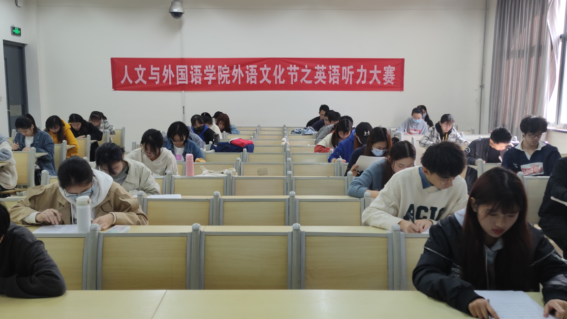 为进一步激发学生英语学习的积极性和主动性,提高学生英语听力水平和读写能力,锻炼学生在现实中的外语应用实践能力,11月7日上午,人文与外国语学院于嘉陵江路校区主教学楼B203等教室举办外语文化节之英语听力大赛,并引起良好反响,全校共有百余名学生参加此次赛事活动。