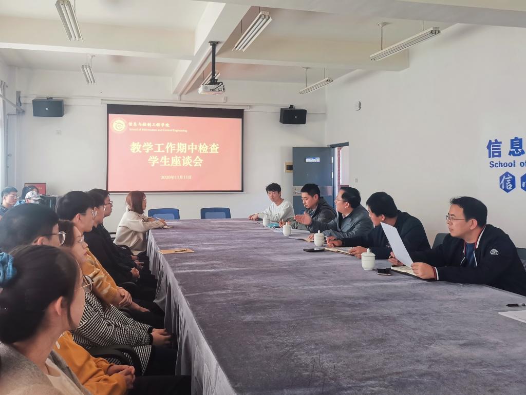 为进一步提高学院教育教学质量,强化常规教学管理和教学质量监控,全面掌握开学以来教学运行情况,根据学校及学院期中教学工作检查的要求,11月11日下午,信息与控制工程学院在嘉陵江路校区主教学楼A507召开教学工作期中检查学生座谈会,学院党总支书记董典同、党总支副书记曲良波、副院长宋传旺、教学办主任田志超、辅导员贾戈及各年级、各专业的学生代表30余人参加座谈会。会议由宋传旺主持。