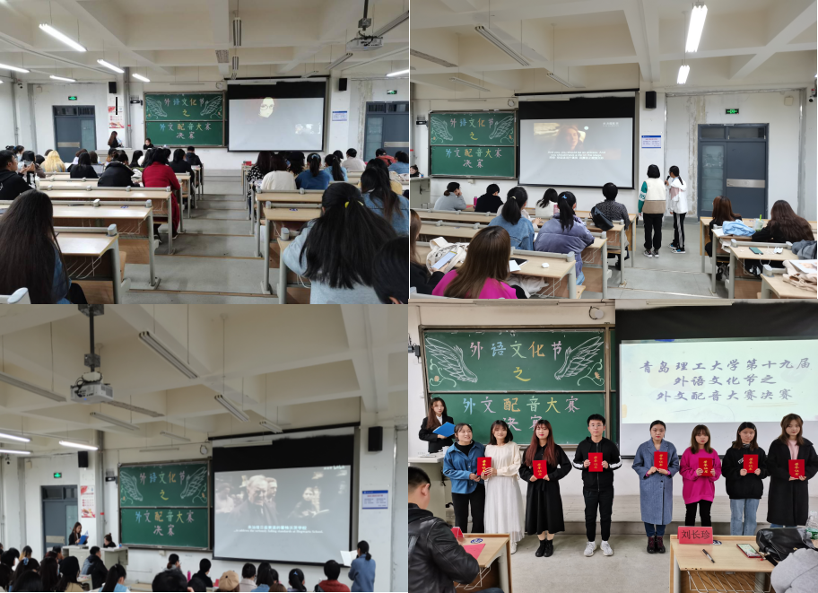为进一步提高学生学习外语的积极性,锻炼学生外语口语能力,营造学院良好的外语学习氛围,11月15日,人文与外国语学院在嘉陵江路校区主教学楼B135举办第十九届外语文化节之外文配音大赛决赛。管理工程学院、理学院、商学院、信息与控制工程学院等9个学院共22组选手晋级决赛,王延红、刘长珍、李娇、孙玮等专业教师担任比赛评委,分团委书记兼学工办主任马松参加本次活动。
