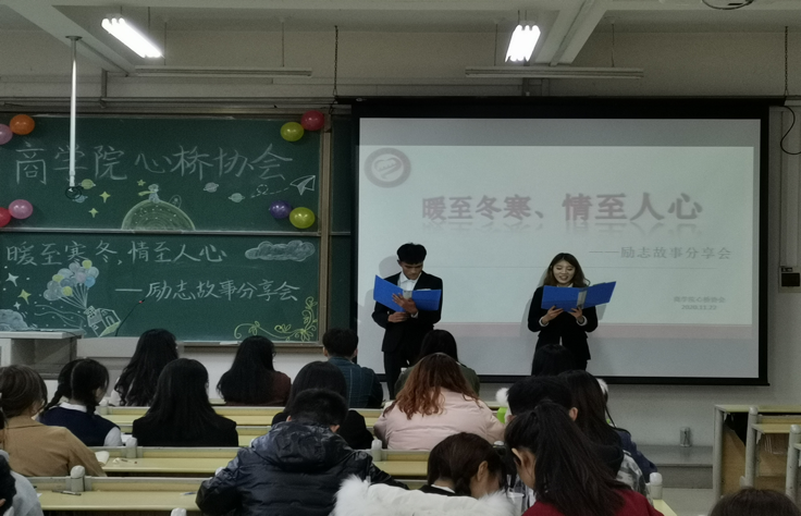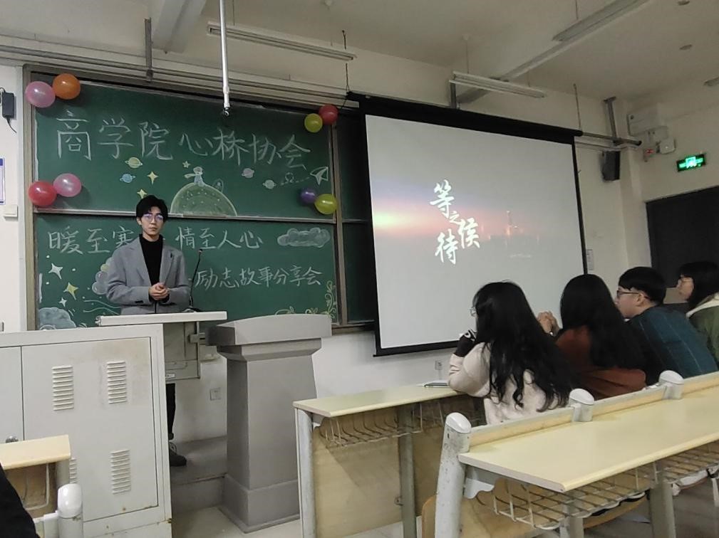 为加强学生心理健康教育,引导广大青少年学生树立正确的人生观和积极向上的人生态度,11月22日下午,商学院在主教学楼B218举办“暖至寒冬,情至人心”第三届励志故事分享会。分享会由商学院心桥协会承办,商学院主席团与青衿学社会长担任评委,17位参赛选手参加。