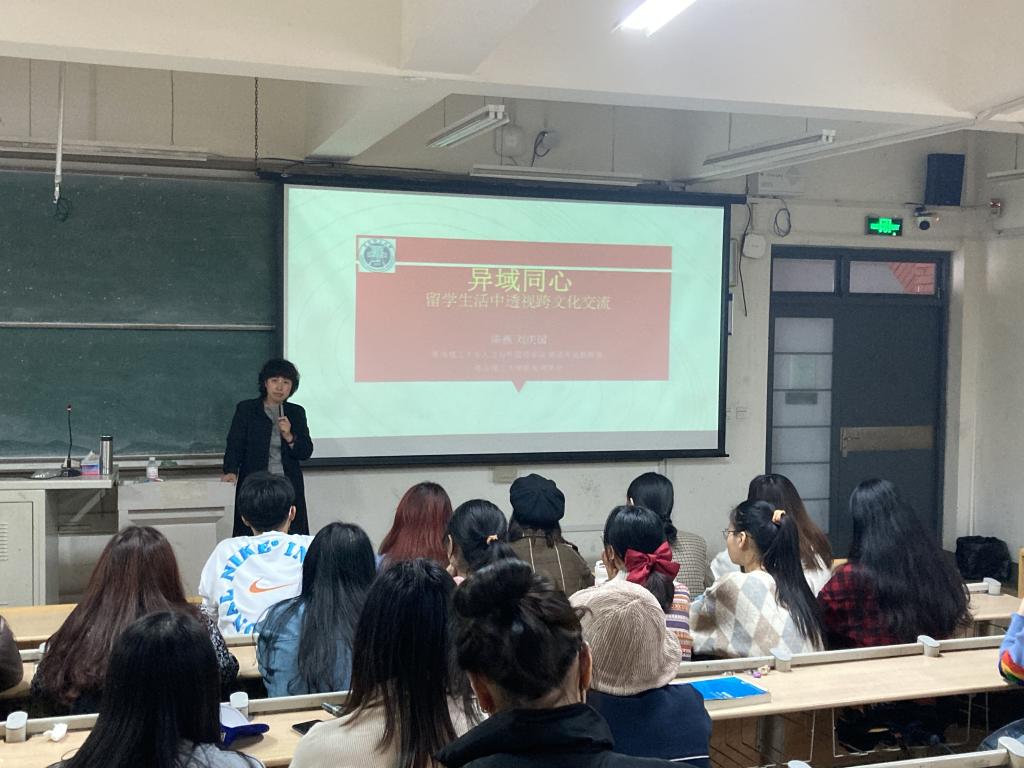 近日,人文与外国语学院“新论语”讲坛第94讲顺利进行。本次讲座在嘉陵江路校区主教学楼B202举行,由英语专业教研室陈燕、刘庆国老师主讲,题为“异域同心--留学生活中透视跨文化交流”。