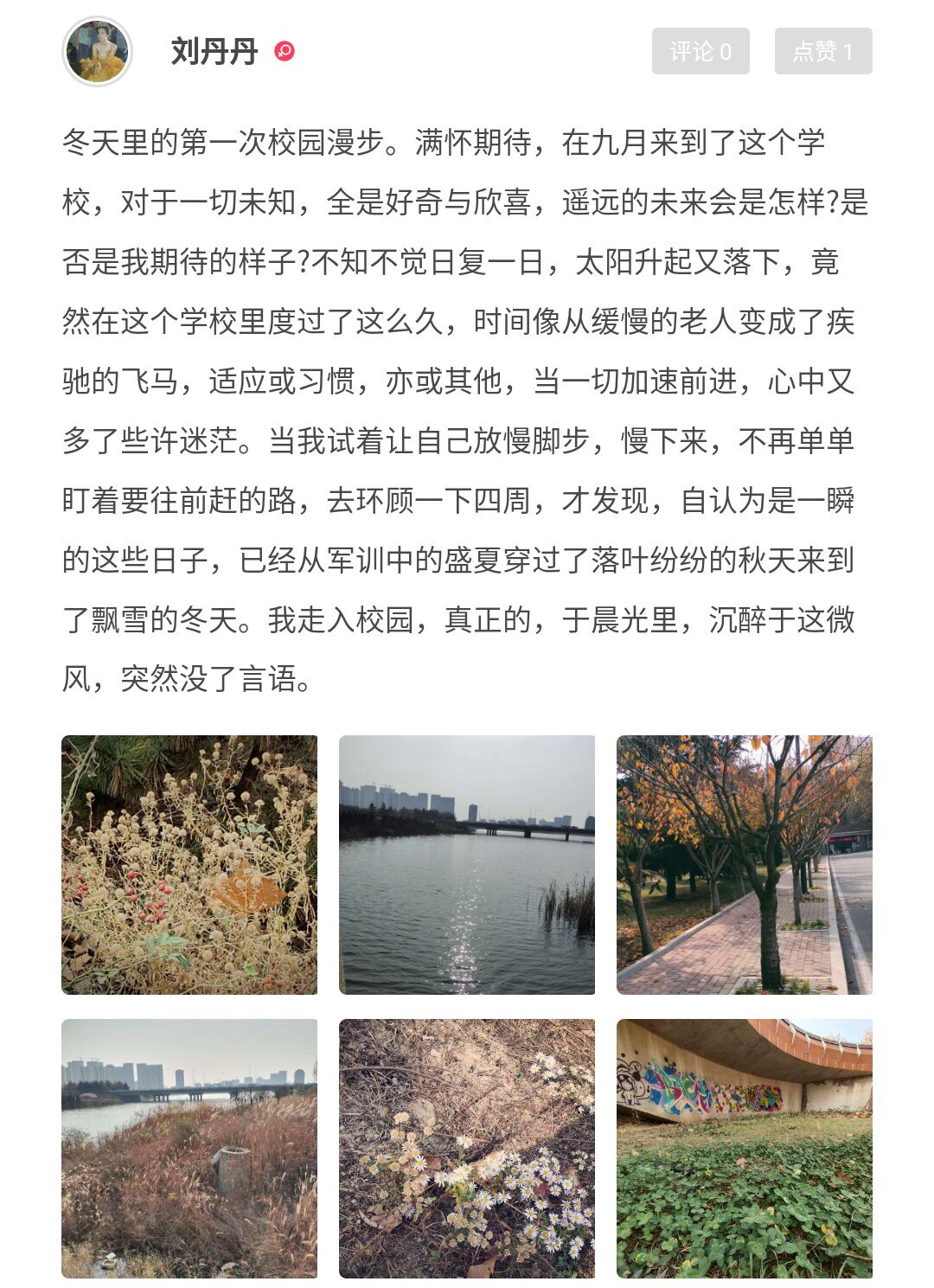 11月14日上午,活动于到梦空间开始报名,随后同学们开始在花絮中分享自己立冬之后的“第一”次经历。活动开始后,冬天的第一条秋裤、冬天的第一个自习、冬天的第一次演讲等开始陆续被分享在花絮当中。有人配上清晨的一缕阳光,说要积极向上加油学习,有人拍下一本书中的节选,向我们讲述他冬天所读到的第一个故事。更多的人选择展示自己幸福的情感生活,将另一半精心准备的礼物晒了出来,搭配上未来可期的文字;也有将相隔千里的亲友寄来的一份思念分享给大家,让这个冬天承着远方的惦念而不觉得孤单寒冷。
