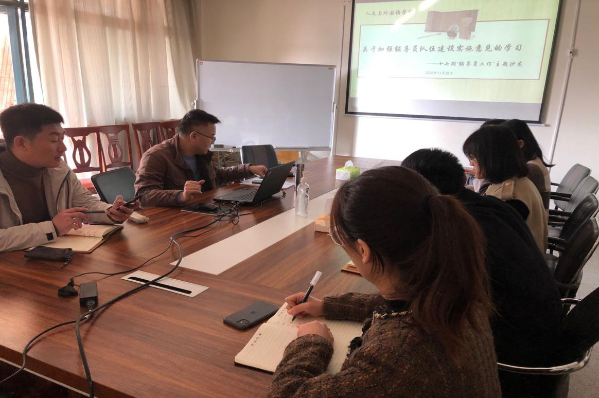 为响应学校党委号召,切实推进辅导员专业化职业化建设,11月25日,人文与外国语学院于主教学楼A204举办第十七期辅导员主题沙龙暨学习中共365完美体育委员会关于加强辅导员队伍建设实施意见的学习,会议由学院党总支副书记王振主持,学工办主任兼分团委书记马松及全体辅导员参会。