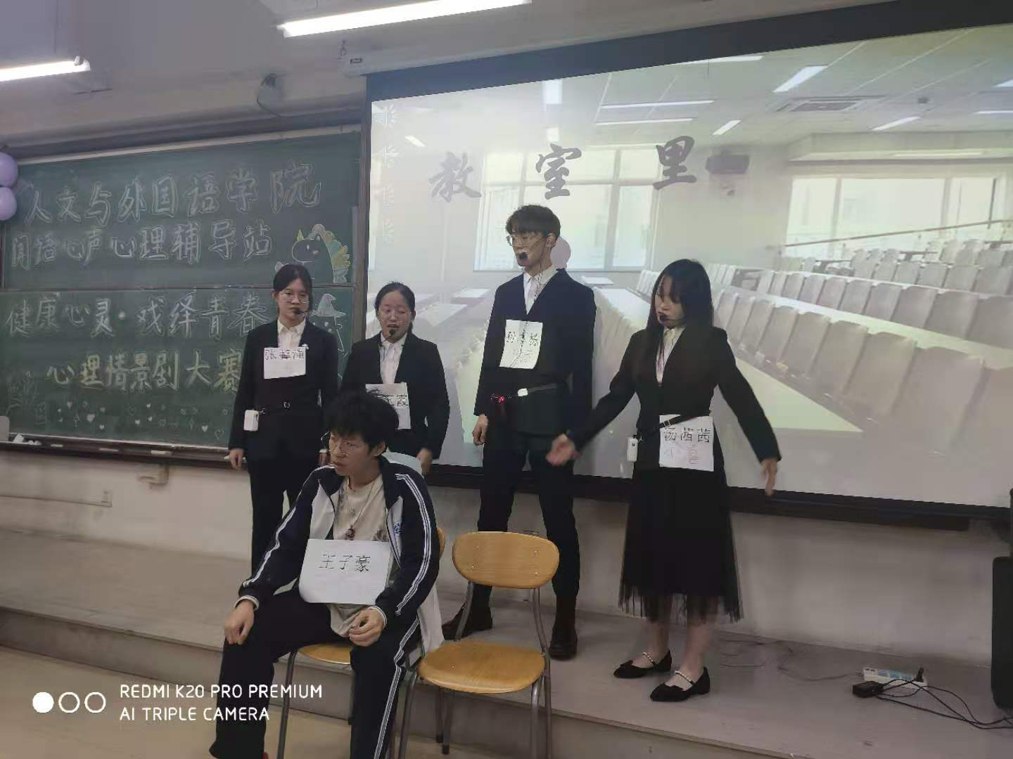 为充分发挥心理育人在思想政治工作中的重要作用,提高学院心理健康的内涵体验式教育水平。人文与外国语学院于12月2日晚在嘉陵江路校区主教学楼B201举办以“健康心灵,戏绎青春”为主题的心理情景剧大赛。学院闻语心声心理辅导站站长王振,闻语心声心理辅导站刘世颖、陈刚、辛雪梅、王才升担任评委,学院全体心理宣传员及朋辈志愿者计200多人到场观摩。