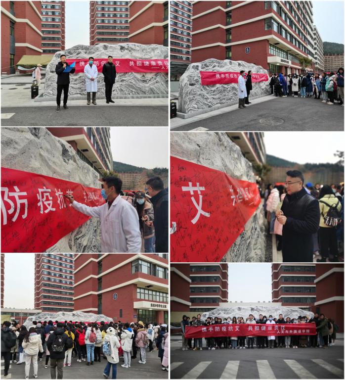 活动伊始,王才升表示本次活动旨在全球抗击新冠肺炎疫情背景下,向同学们宣传正确的防治知识,引导同学树立社会责任意识和道德观念,携手应对新冠肺炎、艾滋病等全球范围内重大传染病。随后,崔晓健进行讲话,他强调大学生群体依然是高感人群,倡导大家课余时间加强体育锻炼,不断提高免疫力,实现远离艾滋的宣传目标。最后号召大家在印有“携手防疫抗艾共担健康责任”的横幅上签名。同学们积极参与,依次签名拍照,并领取“红丝带”胸针。同学们用自己的实际行动参与到抗击艾滋的行动中。