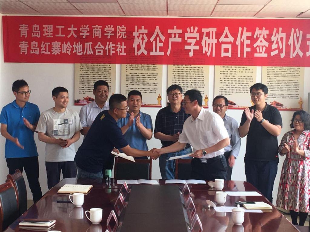 商学院党总支副书记董兰国代表365完美体育商学院与青岛红寨岭地瓜合作社签订校企产学研合作协议书