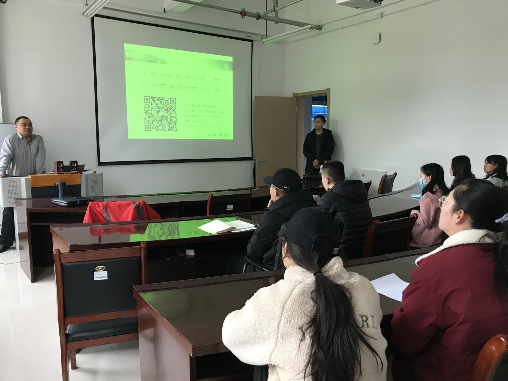 山东中检校准技术有限公司人力资源部经理左兆迎以公司宣传片开场,向同学们详细介绍了公司的概况、资质能力、实验室能力、业务服务承诺、职业发展方向以及人员需求。招聘会现场气氛活跃,同学们根据自己的就业需求,积极咨询个人关心的薪资待遇、业务内容、人才培养等具体情况。