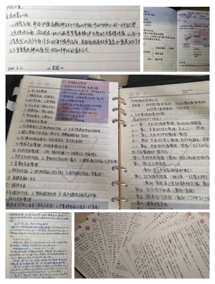 活动中,学生党员和入党积极分子勇担责任,树立榜样,踊跃进行投稿,带来了优秀的笔记作品展示。这些优秀的笔记作品在保证笔记知识点全面细致的同时,体系分明、详略得当、重点突出,兼具实用性和美观性,值得同学们进行学习和借鉴。广告181 刘心凝表示,在学习过程中,笔记的记录可以将学习经验进行总结和深化,并继续寻求适合个人的笔记方式,如:用小本子记录以便于携带、翻阅,分类清晰;将知识点裁剪粘贴,节省了记录时间,提高了整理效率;多种颜色并用,强调突出;思维导图,梳理明确思路等。