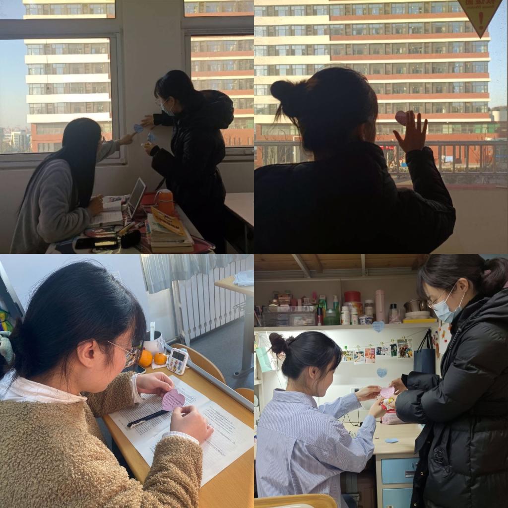 卡片小小,情意满满,这是来自学院的特殊礼物。“我们常说的要加油呀,并不是觉得你不够努力,也不是要你跟别人比成就。而是由衷地觉得,你不止于此,你值得更好的,希望你可以被善待被偏爱,所以你不要放弃,再努努力呀”“乾坤未定,你我皆是黑马”“当你在夜晚孤军奋战时,漫天星光因你而闪烁”“愿你终成所愿,愿你一往无前”“你们尽管走,走向灯火通明”……一行行饱含诗意与深情地的滚烫文字在卡片上款款写下,一句句真挚、温馨的祝福镶刻在字里行间,这是为考研学子准备一份特殊的礼物。就业辅导员辛雪梅亲自手写卡片,为在主教学楼、北区5公寓的学院考研学子,一一送上了冬日暖心寄语。此外,学院还在考研自习较集中区域的墙上、窗户上、书桌一侧贴上了祝福便签,勉励考研学子。英语171班的蔡凤臻同学说:感谢学院一直做我们考研人最坚实的护盾,前期,学院为我们开放有声自习室,为我们集中提供了自习场地!今天,又为我们一一送上了祝福,我们相信在学院的祝福下,我们必能上岸!