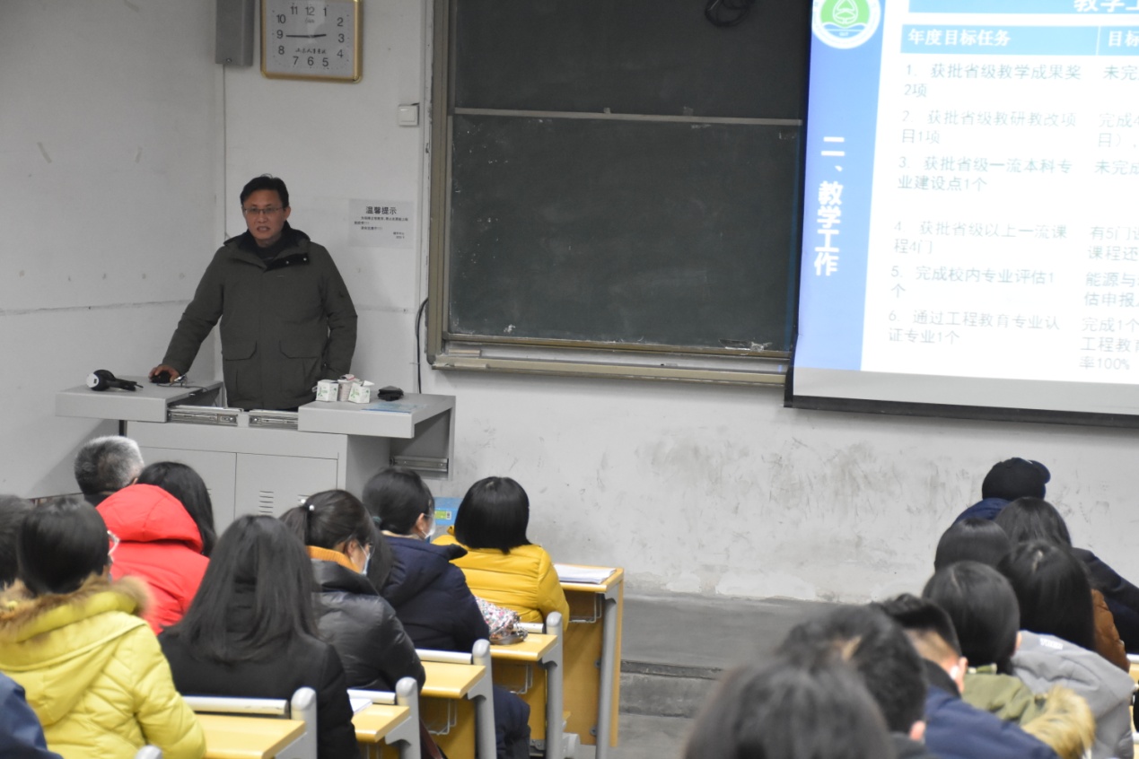院长毕学军按照2020年度目标考核任务从党建工作、科研工作、教学工作、师资队伍建设、学科建设与研究生工作、学生工作、综合管理等七个方面对学院2020年的工作进行了全面总结,分析了年度工作完成情况和努力方向。毕学军指出,2020年学院全体师生抢抓机遇团结实干,认真完成了各项工作任务。希望新的一年大家共同努力,在高层次师资引进、教学科研等方面再上台阶,取得更大成绩。