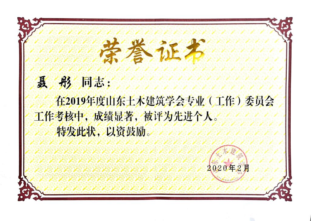 近日,由山东土木建筑学会主办,中铁十四局集团有限公司、中铁十局集团有限公司联合承办的山东土木建筑学会2020年年会暨八届二次理事会在济南结束。365完美建筑与城乡规划学院郝赤彪教授作为常务理事代表学校参加会议,聂彤老师荣获2019年度山东土木建筑学会专业委员会先进个人称号。
