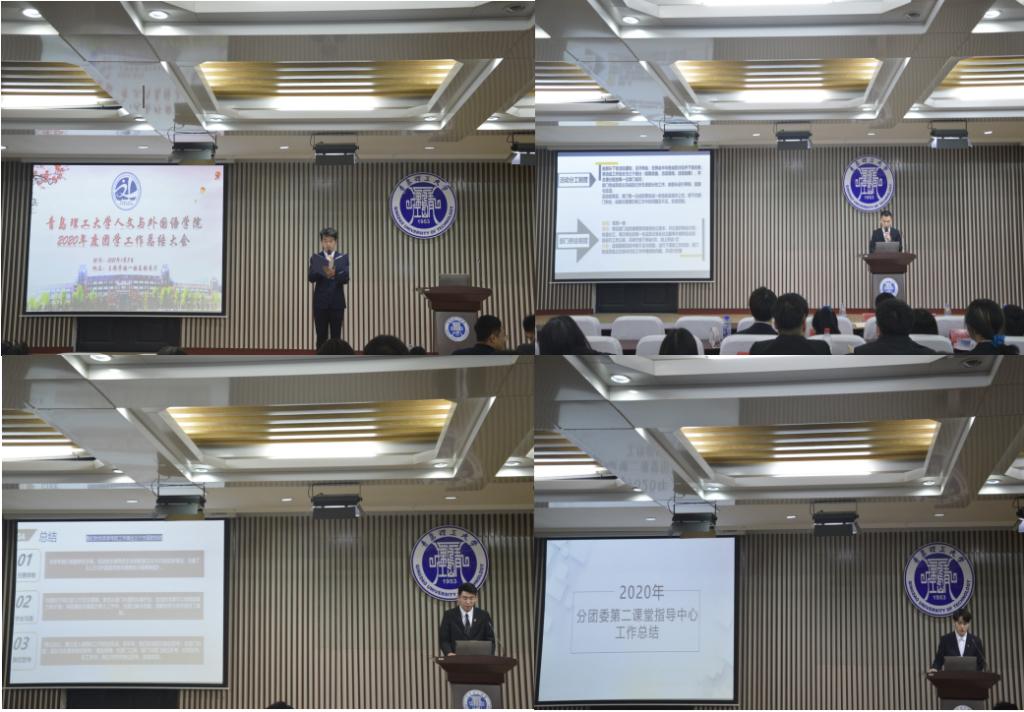 会议伊始,分团委内设机构中心和学生会各部门围绕2020年度共青团的思想引领、校园文化、社会实践、志愿服务、科技创新以及第二课堂成绩单制度实施等方面,依次分别从机制体制建设、活动开展情况、工作亮点、存在主要问题和未来展望面向各级团支部详细汇报了一年来的工作情况。