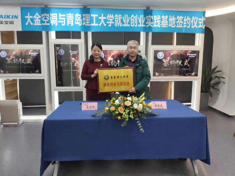 近日,环境与市政工程学院一行赴大金(中国)投资有限公司南京分公司举行就业创业实践基地签约仪式。大金青岛营业部副部长王念平、青岛总务人事栾锋,环境与市政工程学院党总支副书记邵长飞、副院长李金成等参加仪式。