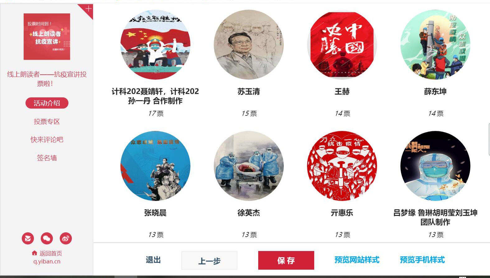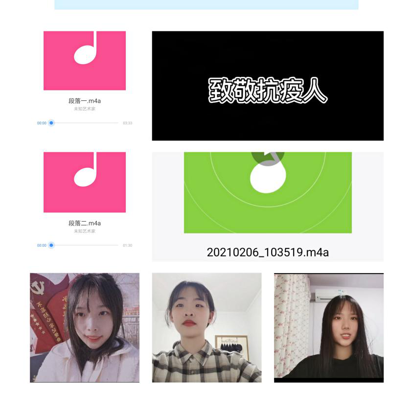 在持续多天的活动中,同学们都积极投稿,所有作品均在理学院易班平台分期展示,并在轻应用快搭投票,共评选出一等奖一名,二等奖三名,三等奖五名。三等奖获得者李雅萱同学表示:“在此次活动中,自己通过朗诵锻炼了语言表达能力,充实了假期时光,更重要的是深刻认识到了防疫一线人员的艰辛,意识到自己作为新青年应当肩负起‘天下兴亡,匹夫有责’的重任。”从报名、拍摄到上传评比,本次活动全程线上进行,参与者们虽全程零接触,却实现了心与心之间的零距离。