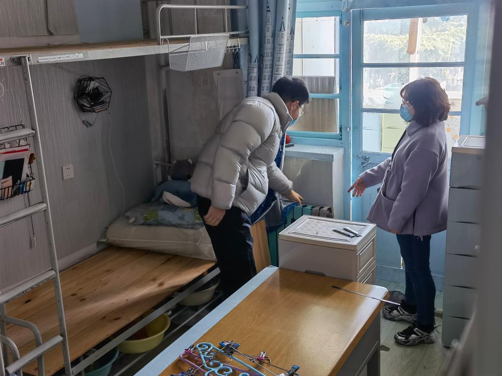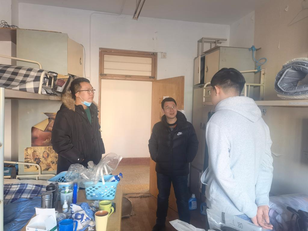 深入宿舍,传递温情。2月25日至28日,学院党总支书记肖学斌、院长许从宝,学院学生工作办公室全体老师深入学生宿舍,看望返校学生,转达学校对学生们新学期的问候和关爱,并进行了安全隐患排查。走访中,肖学斌、许从宝一行走进学生宿舍,看望返校的同学们,向他们表示新学期的问候。老师们亲切地和同学们谈心,了解同学们的家乡变化以及在校学习、生活和进步情况,征求同学们对学校教育教学的意见和建议,嘱咐同学们和睦相处、互相帮助、努力学习、共同提高,希望大家多参加有益的社会实践活动、多了解新时代中国特色社会主义建设的成就,树立人生远大目标。(撰稿:王明慧;审核:高江)