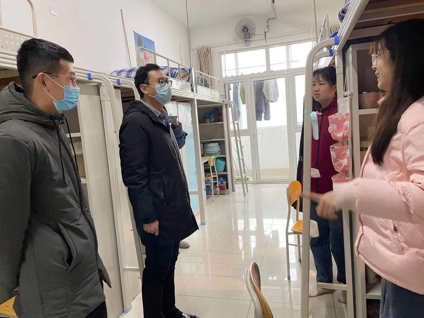 为深入了解学生新学期思想动态,落实新学期学生公寓疫情防控要求,2月28日,商学院党总支副书记董兰国带领全体辅导员深入学生宿舍,开展新学期宿舍走访及卫生安全大检查。