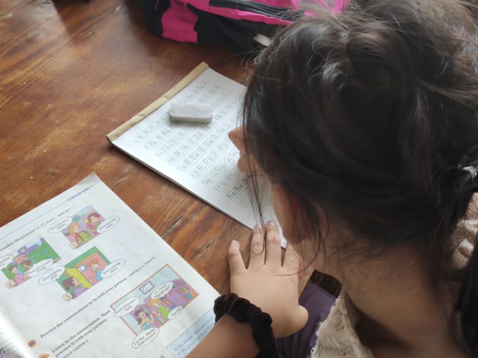 在志愿者的陪同与辅导下,小梦提前预习了未来要学习的课程知识,张静结合自己当年的学习经历,带领小梦徜徉在知识的趣味海洋。孩子清澈的双眸里甚至因兴奋泛起了层层涟漪,这让我们的志愿者感动不已。曾进与小梦分享了自己的经历,鼓励小梦要常怀感恩之心,在今后的成长道路上,努力提升自我从而实现自我价值,以为社会做贡献为要义,回报社会。志愿者们真挚的言语为小梦带来暖意,也为这个小女孩点燃了心底的希望。