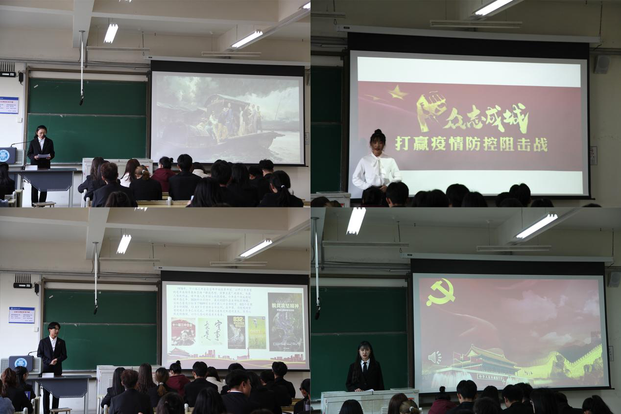 为庆祝中国共产党100周年华诞,培育大学生家国情怀,3月14日下午,商学院在教学楼B214教室举办“青春心向党”大学生庆祝建党100周年主题演讲比赛,商学院辅导员刘奕,商学院分团委、学生会部分学生干部担任评委,经过班级团支部初赛选拔后的32位同学参加了本次演讲比赛。