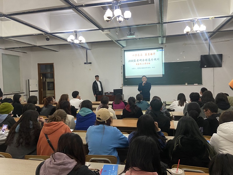 雷老师就备考学生提出的考研信息填报等疑问进行一一解答,剖析了为何考研以及考研的重要性,将当前考研形势及学院近年来的考研情况做了细致分析。老师建议大二学生尽早做好考研准备,明确目标学校,保持良好心态,端正复习态度,用信心、恒心、决心和平常心提前进入考研准备。最后,同学们在互动答疑环节踊跃提问,老师耐心解答,针对专业热点问题、不同类别所考内容差异问题、专业考研问题等作出详细阐述。
