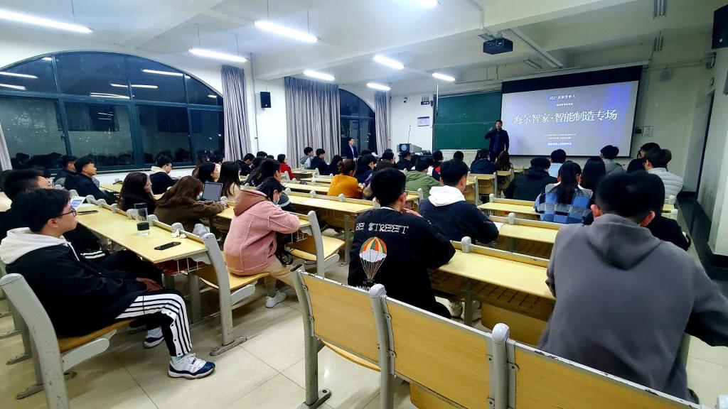 宣讲伊始,陈斌通过PPT就公司的发展历程、企业概况、岗位要求以及需求类别进行了全面的介绍,使毕业生对海尔智家有了更深层次的认识。陈斌表示,海尔智家秉承“以用户为是,以自己为非”的理念,在全球构建了研发、制造、营销三位一体的竞争力,实现世界级品牌的布局和全球化运营。公司主要招聘理工类与管理类相关专业的毕业生,十分重视人才的培养。最后,陈斌对公司的薪资待遇以及人才培养方案做出了详细介绍,并鼓励同学们结合自己的兴趣去尝试,去争取。宣讲会结束后,同学们积极地投递自己的简历,并与相关工作人员进一步交流。