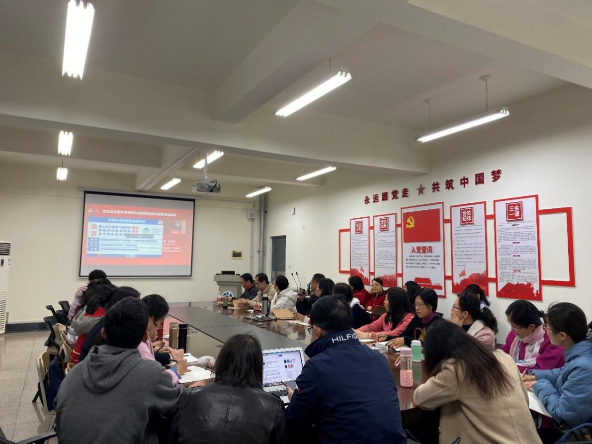 下午,人文与外国语学院全体大学英语教师就本次高端论坛的主题“铸教、铸人、铸魂”和主旨发言体会展开热烈讨论,议题集中在立德树人与课程思政、信息技术与课堂教学质量、以及教师素养与教师评价。