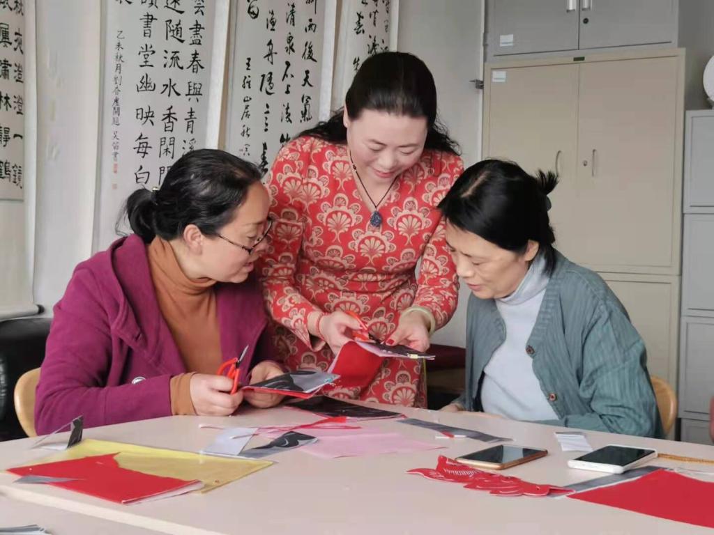 活动荣幸邀请到了剪纸非遗文化传承人薛玉红,薛玉红介绍了传统剪纸艺术的魅力和剪纸中注意的技巧。随后,大家全身心投入到剪裁纸乐趣中,一把剪刀,几层合订的红纸,在薛玉红耐心的指导下,有板有眼的剪着。