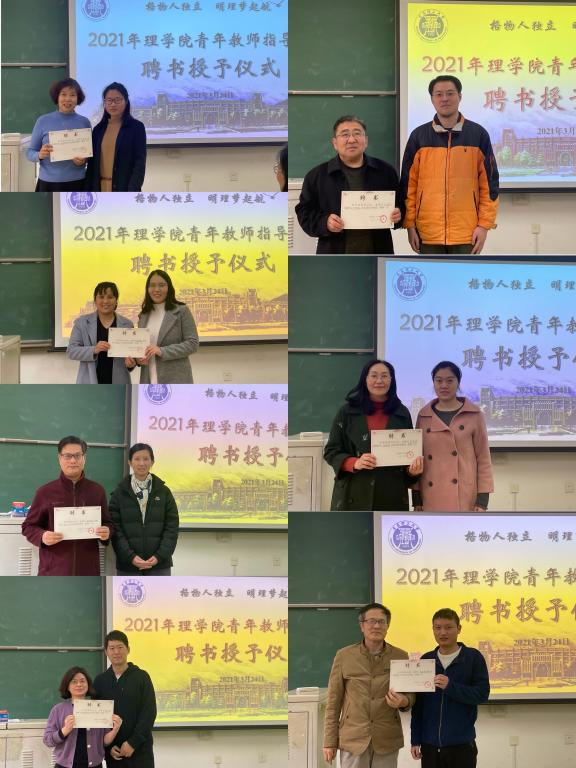 范兴奎首先宣布了青年教师导师名单,随后一对一将聘任证书颁发给导师及青年教师,并合照留影。