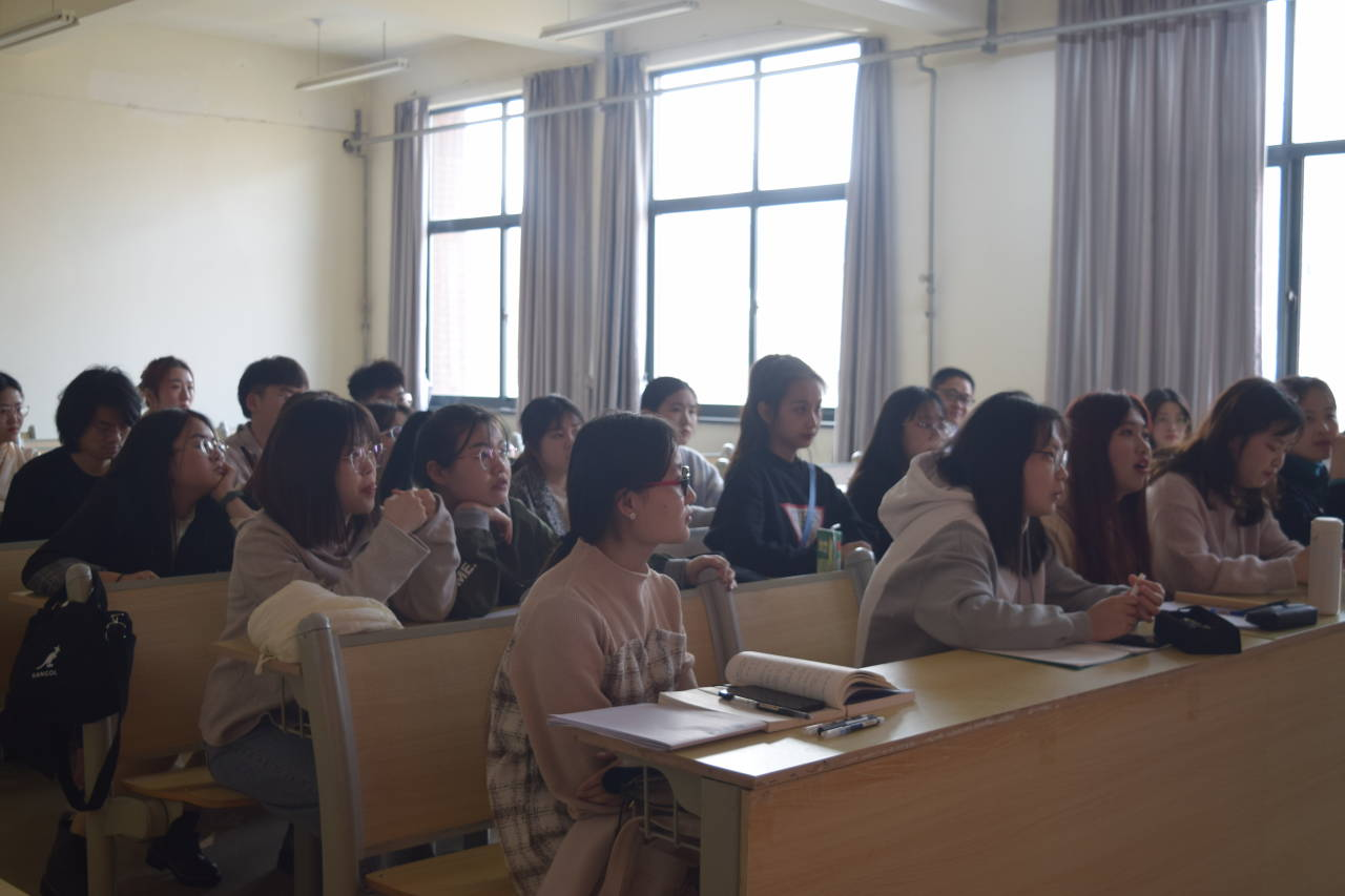 会议伊始,王苏晖就考研相关问题提出自己的建议。她认为考研首先要树立切实远大的目标,并且在这过程中一定坚定自己的想法,王苏晖认为适时地为自己寻找精神支柱,也是保持自身动力的方法之一。其次,结合自身的实力,做到从实际出发。最后,她表示要重视考研前期的信息收集工作,如人数比例,院校信息等。王苏晖特别介绍了同届同学的就业情况,为学弟学妹们的人生道路选择提供借鉴。
