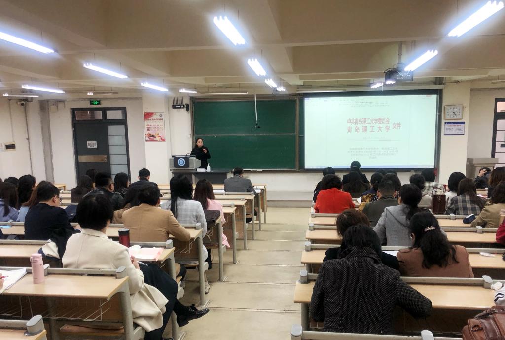 3月31日下午,人文与外国语学院在嘉陵江路校区主教学楼B201召开全体教职工大会,传达学校有关会议精神,部署学院工作。学院党总支书记王新主持会议,全体教职工参加会议。
