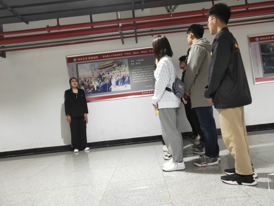 团员青年一起学习了油画作品《五四运动》。通过讲解,大家了解到《五四运动》是1951年由周令钊先生创作的油画,画作呈现的是1919年5月4日,北京十几所学校的三千多名学生通过游行示威,要求当时的中国代表拒绝在巴黎和会上签字的情景。课程结束后,同学们相互交流学习收获,增进了大家对新时代青年肩负责任的认同感。