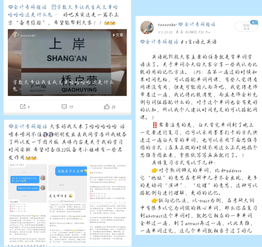 当问及对学弟学妹的建议时,她们不约而同地提到了两个词:一是坚持,二是勤奋。“考研的过程可谓‘路漫漫其修远兮’,充满了各种挑战,越往后走越会觉得痛苦。心里的压力、做题的瓶颈、身体的疲惫像三座大山压在身上难于喘息,但哪怕今天状态不好、效率不高也不能灰心,短暂调整一下,明天又会是元气满满的一天。”栾铭雨说道,“坚持不是靠嘴说的,而要靠无可阻挡的热血加上想要不断进步的行动坚守,最终所创造出来的就是奇迹。”人生在勤,不索何获,坚持是成功的秘诀,勤奋则是克服先天不足的灵丹妙药。“天道酬勤,老天只会青睐有准备的人,而不会把机会降临至守株待兔的人,比我们优秀的人亦更勤奋,我们又有什么理由停滞不前。”张秀慧如是说。只要能够脚踏实地、坚持不懈,就一定能达成目标。