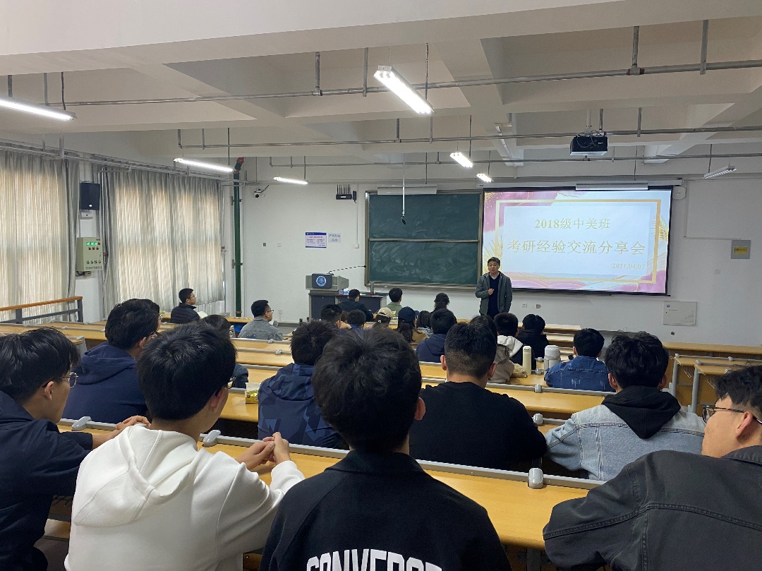 2017级中美班共有23名同学考取了哈尔滨工业大学、大连理工大学、中国矿业大学等国内知名院校,2名同学分别保送至东南大学、大连理工大学攻读研究生。本次交流会不仅为同学们提供了宝贵的考研经验,让同学们对考研有了全方位的认知,还为2018级中美班准备考研的学子明确了学习的方向,更加坚定了他们的考研信心和决心。(撰稿:马蓉蓉;审核:刘俊伟)