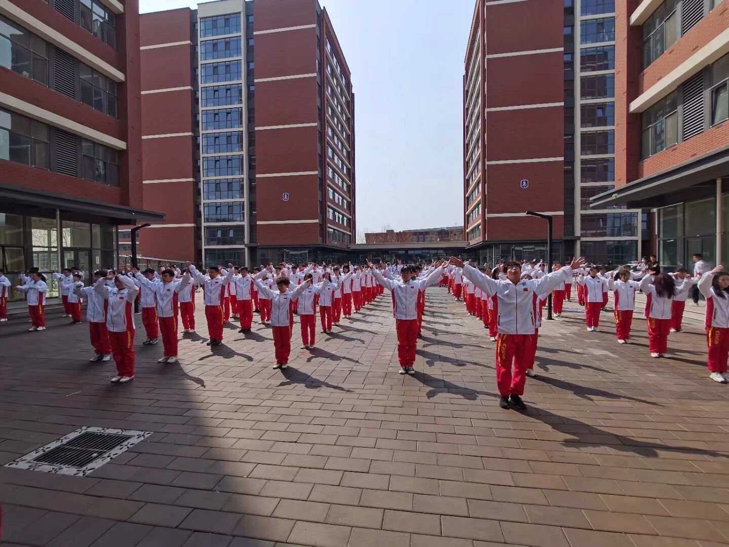 邵先锋讲话,他指出,本次广播操比赛既是一次对同学们体育素质、精神风貌的大检阅,又是班级凝聚力、执行力的大展示,希望同学们端正态度,积极参与,为班级争得荣誉。随后,各班队列有序进入到比赛场地,随着音乐响起,同学们全身心投入到了广播操比赛中。