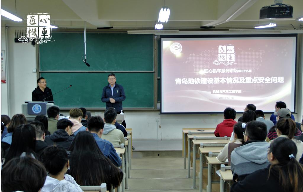 4月14日,机械与汽车工程学院邀请青岛地铁1号线总工程师李克先做客匠心机车讲坛,在嘉陵江路校区主教学楼B211教室带来了一场以“青岛地铁建设基本情况及重点安全问题”为主题的讲座。机械与汽车工程学院相关专业老师,2017、2018级本科生及研究生共约200人参加。