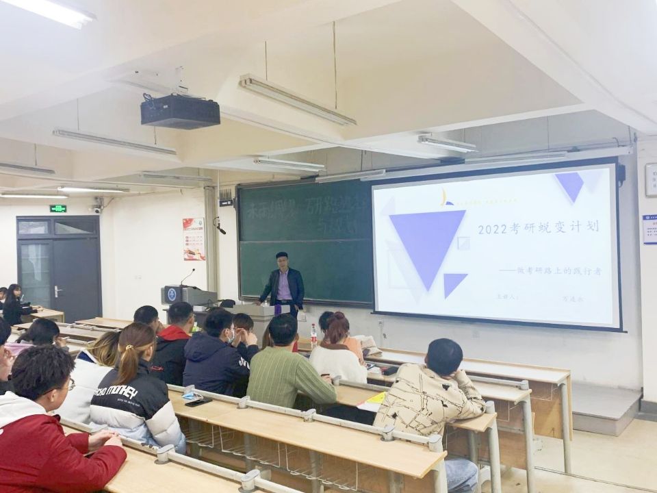 讲座伊始,万进永就2021届学子考研情况入手,从考研规划、考研高校选择、初试复试等准备问题为同学们解答疑惑。从专业备考的角度详细划分解读考研复习时间段,帮助人文社科学子把握有效关键时间点;详细解读关于志愿选择、院校分析等相关信息,通过辽宁大学为例详细分析国内知名高校,帮助有意向的学子从自身情况出发选择适合自己且容易上岸的院校,同时对意向人文社科的学子介绍课报考专业的优缺点,为学生们选择目标学校专业提供充分细致支持。讲座结束后,同学们纷纷表示感触颇深,广告181班杨旭同学表示,“通过此次讲座了解该如何进行考研学习规划,并对未来考研院校有了打算,确立了明确目标,感到受益匪浅。”