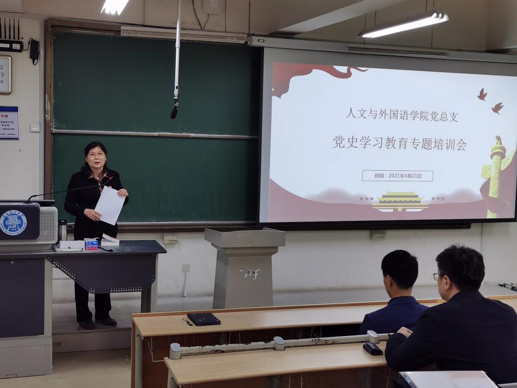 为扎实开展党史学习教育,不忘初心使命,传承红色基因,4月21日下午,人文与外国语学院党总支在嘉陵江路校区一号教学楼B230举办了“党史学习教育专题培训”。本次培训邀请马克思主义学院副教授刘金德、李晓辉分别作了专题讲座。学院党总支副书记王振主持会议,学院全体教工和学生党员参加了学习。